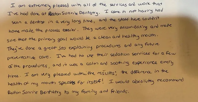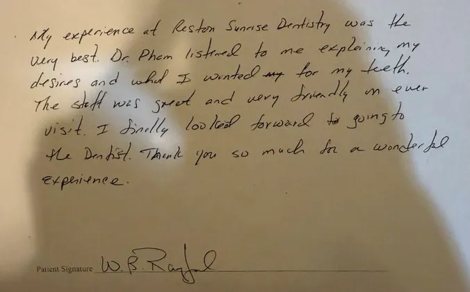 Reston Sunrise Dentistry: Our Patient Testimonial