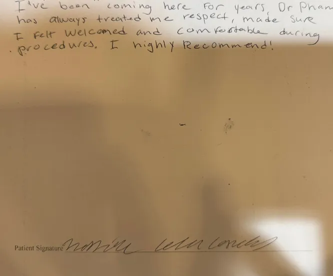 "I've been coming here for years, Dr. Pham has always treated me with respect, made sure I felt welcomed and comfortable during procedures. I highly recommend!"